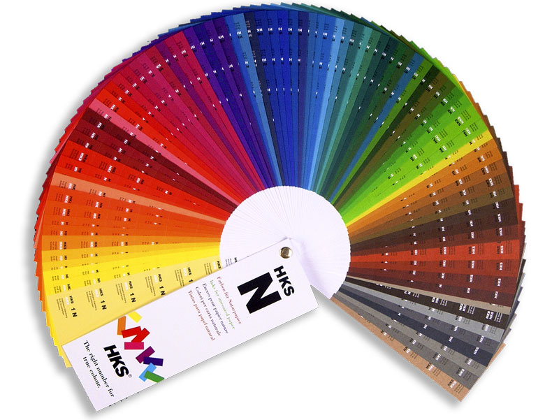 Mit der Wahl der HKS Schmuckfarbe erhalten Sie Ihre eigene Firmenfarbe auf den Drucken. HKS-Farben sind fertig gemischte Farben und werden nicht wie beim 4-Farb-Druck durch Rasterpunkte generiert.